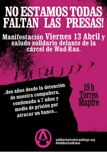 El próximo viernes, 13 de Abril de 2018, A dos años de que los mozos de escuadra, con la colaboración de la policía alemana, detuvieron y encarcelaron a Lisa, nuestra compañera, quien fue condenada a 7 años y medio de prisión, acusada de expropiar una sucursal bancaria en Aachen, Alemania.
