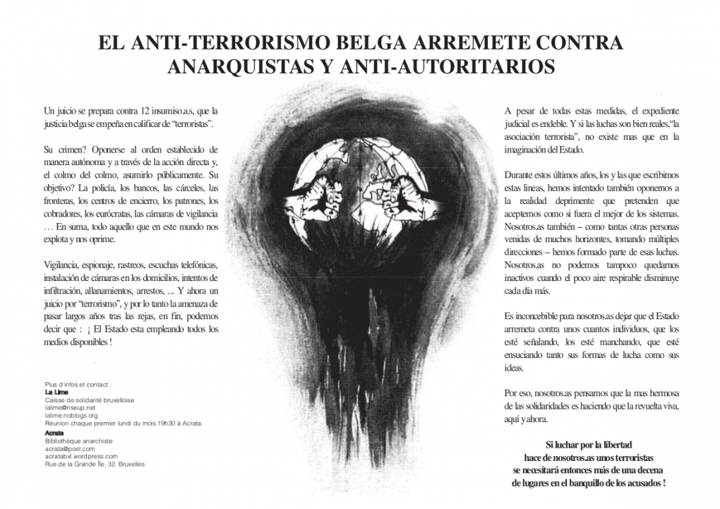 EL ANTI-TERRORISMO BELGA ARREMETE CONTRA ANARQUISTAS Y ANTI-AUTORITARIOS