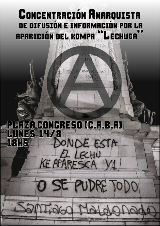 Muchas de nosotras no estuvimos ahí y no somos ni jueces ni poseedores de ninguna verdad (o mentira) para decir que pasó ni justificar ni victimizarnos por algo, pero desde el 1 de Agosto cuando Gendarmería Nacional Argentina entra a allanar el Lof de la comunidad Mapuche y entre balas de goma y de plomos, corridas y agresiones Santiago Maldonado “el Lechu”, un compañero solidario, anarquista, que se encontraba resistiendo y apoyando la lucha del pueblo Mapuche por la recuperación de sus tierras ante el avance de los estados argentino y chileno, y antes los grandes intereses del capitalismo, desparece.