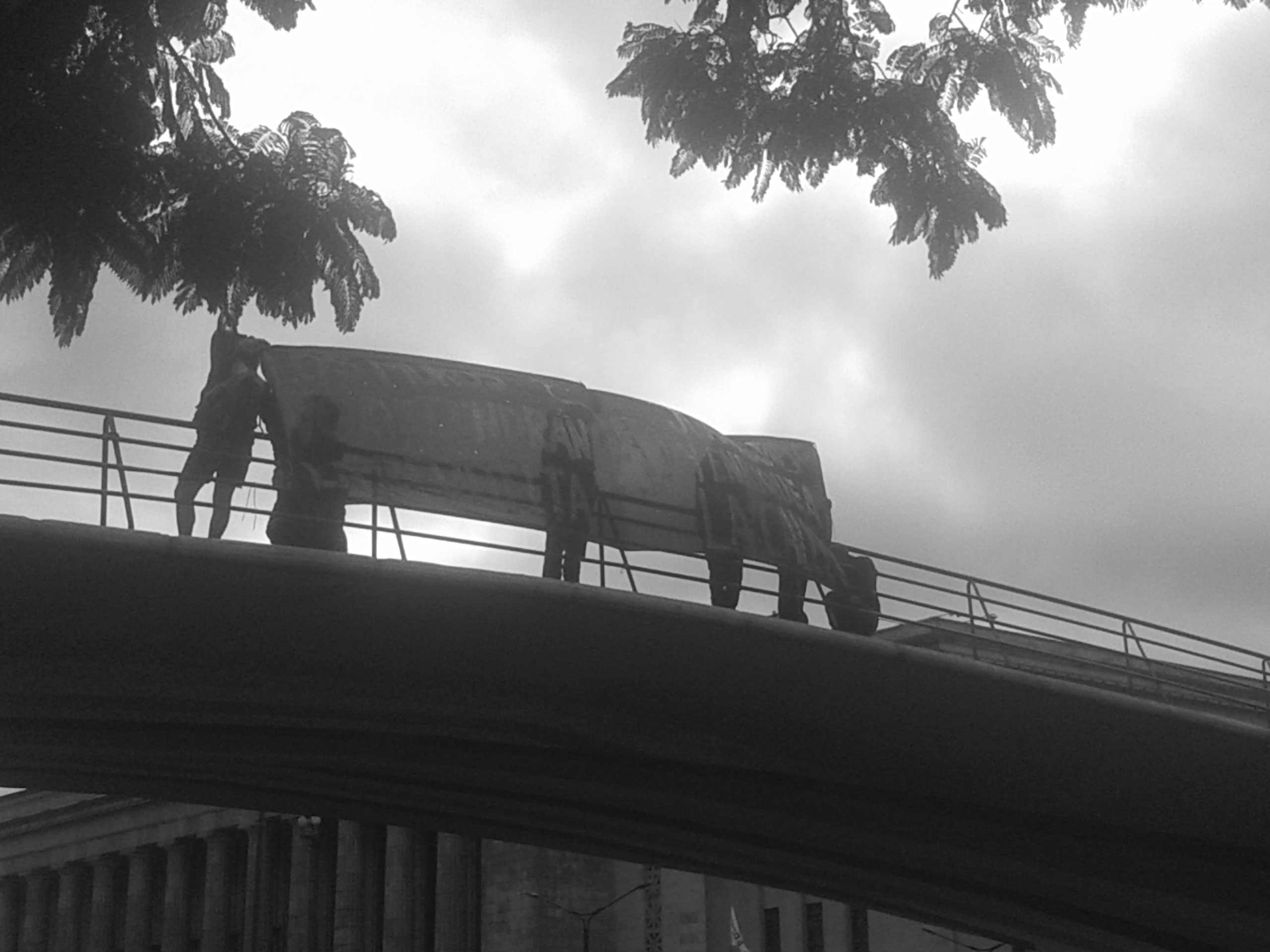 Luego colgamos la bandera en el puente ubicado enfrente de la Facultad de Derecho.