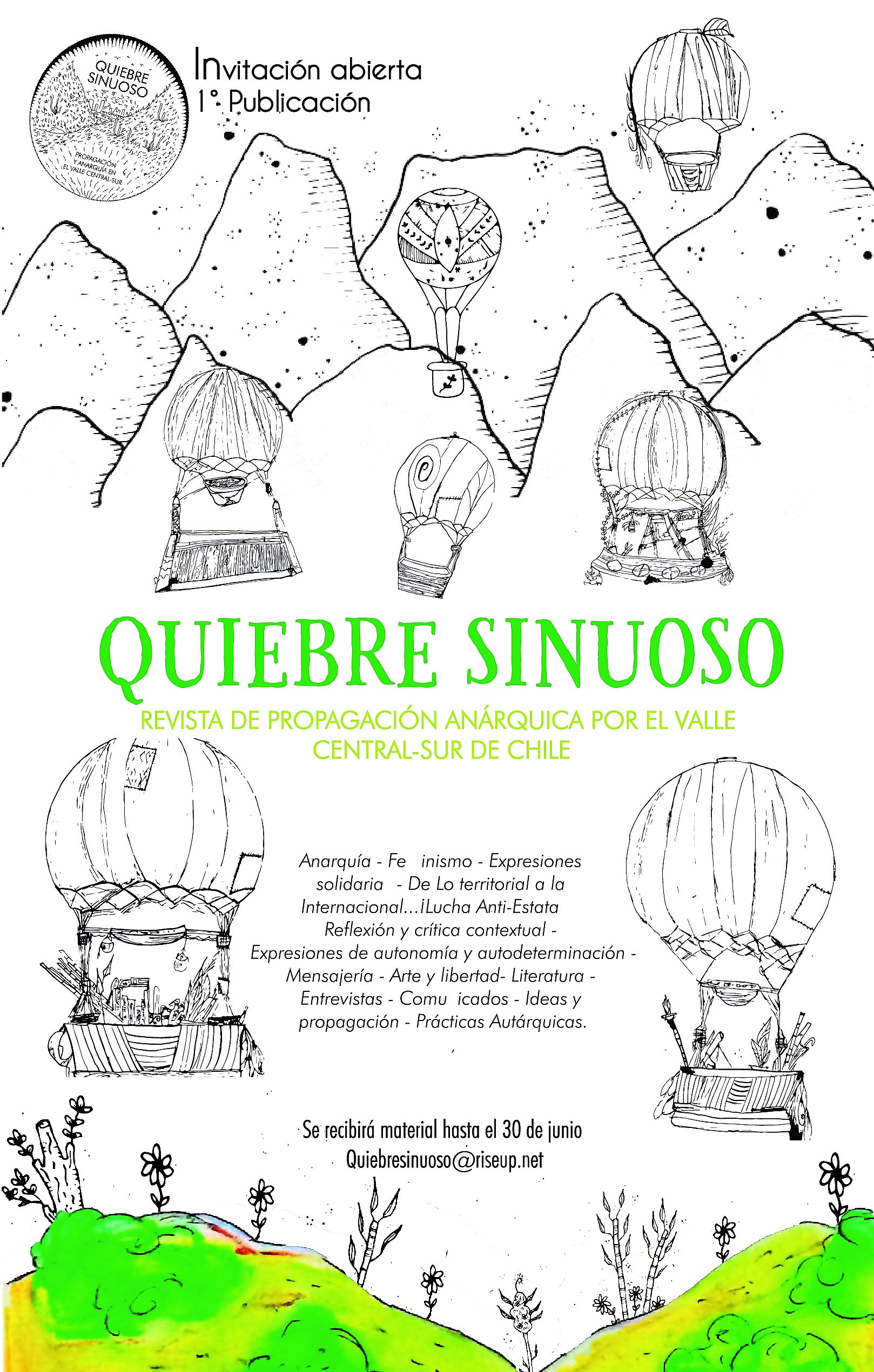 El material a publicar será anticipadamente recopilado a través de quiebresinuoso@riseup.net, y posteriormente reflexionado para su publicación. Las dudas también deben dirigirse a la dirección de correo mencionada.