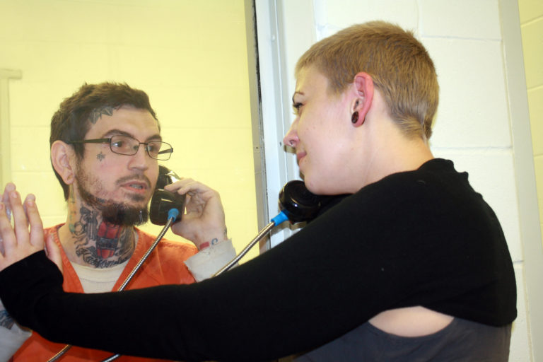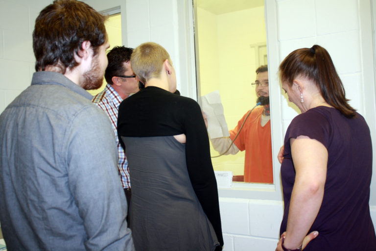 Creo que voy a añadir. Después de todo lo horrible con los guardias, que tenía que entrar en la sala, estar de pie frente al cristal y mirar a los ojos y respirar y luchar para conectarse. Ese lugar está construido para romper esas conexiones y es muy importante ser capaces de luchar para estar presente. Eso es mucho más difícil de lo que pensaba, incluso con alguien que puedo compartir una conexión tan profunda. Y después de todo eso… sólo había muchas risas y locuras en esa sala llena de visitas»