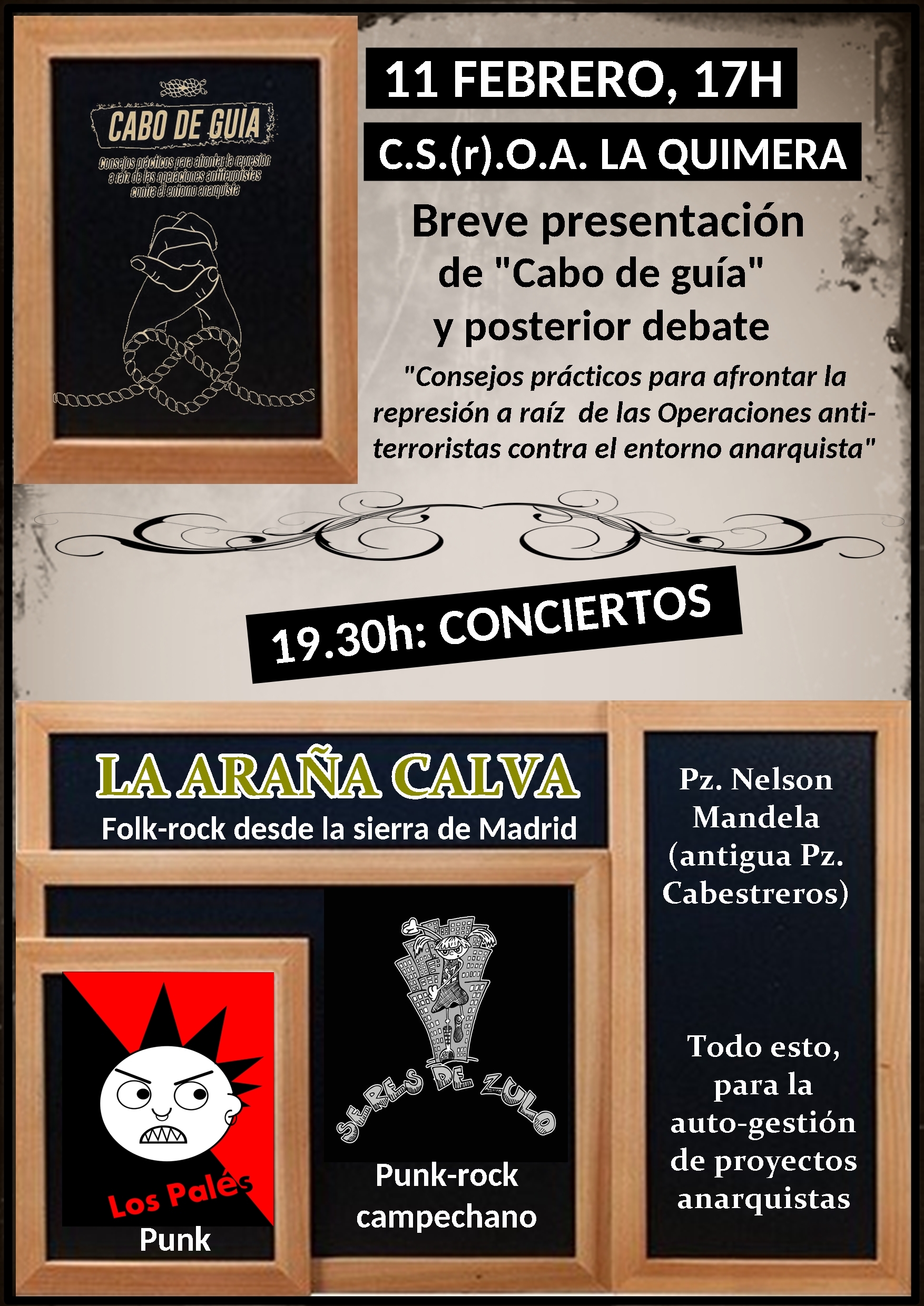 Breve presentacion de “Cabo de guia” + debate + concierto. 11 de Febrero de C.S.(r).O.A. La Quimera