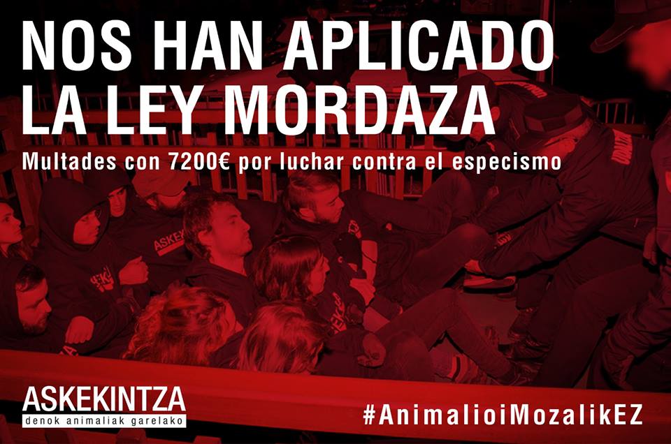 Solidaridad con Askekintza y con todxs lxs sancionadxs o perseguidxs por luchar contra el especismo y contra la explotación más allá de género, raza o especie.