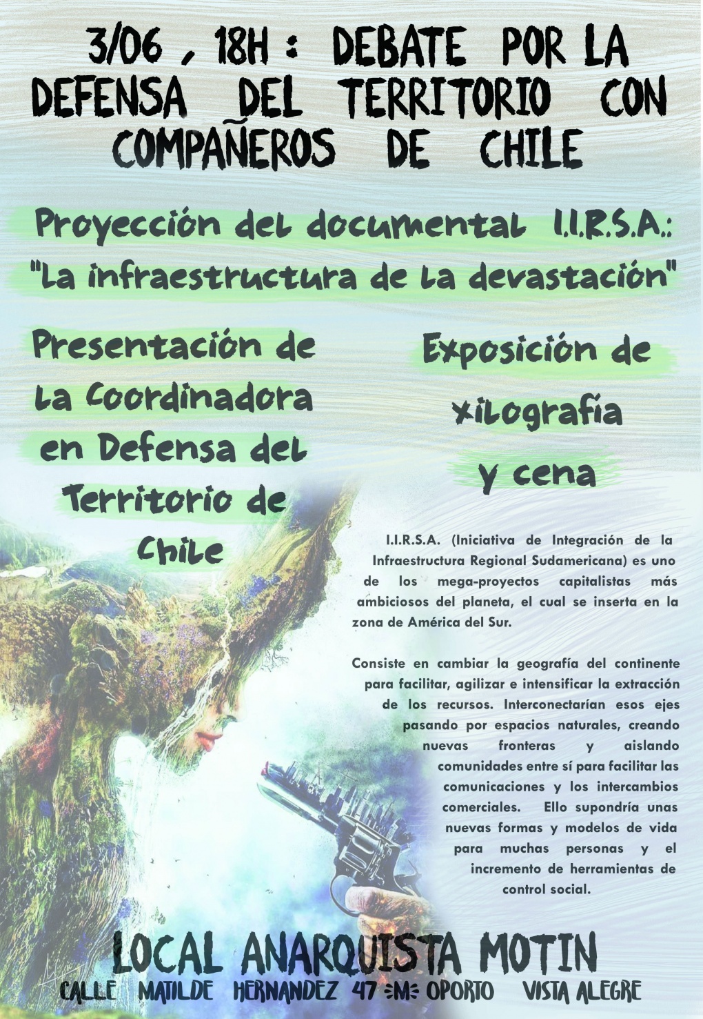 El Sábado 3 de Junio a las 19h: CHARLA-DEBATE EN DEFENSA DEL TERRITORIO CON COMPAÑEROS DE CHILE