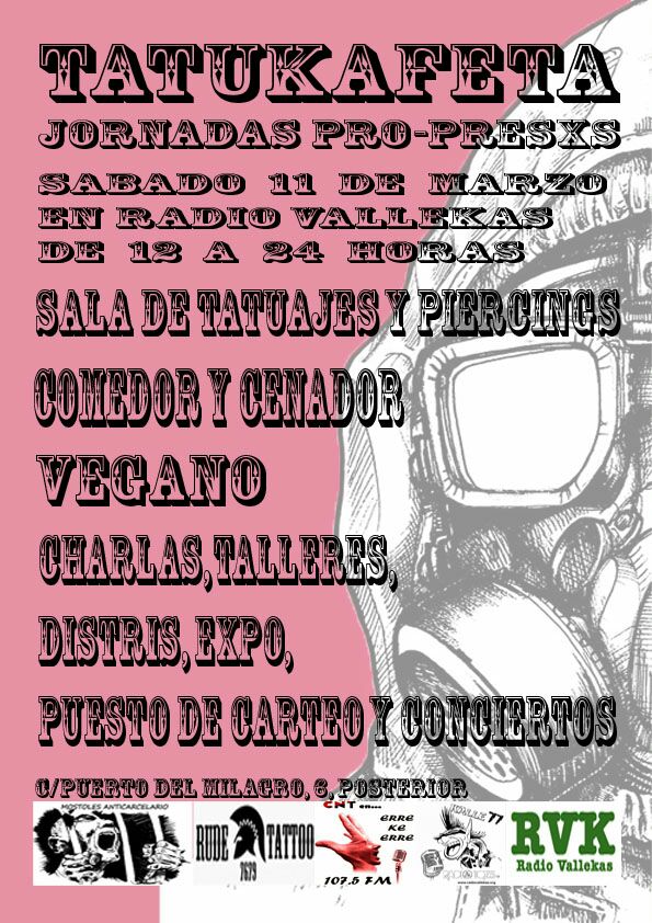 Podeis enviar diseños de tatus y ver los de lxs tatuadorxs ke nos acompañaran aki: tatukafeta@hotmail.com
