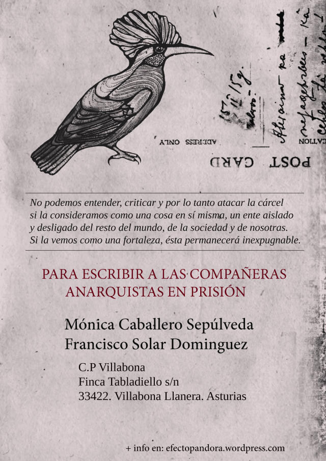 No podemos entender, criticar y por lo tanto atacar la cárcel si lo considermos como una cosa en sí misma, un ente aislado y desligado del resto del mundo, de la sociedad y de nosotras. Si la vemos como una fortaleza, ésta permanecerá inexpugnable.