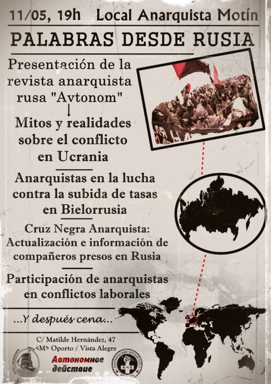 11 de Mayo, 19h. LOCAL ANARQUISTA MOTÍN: “PALABRAS DESDE RUSIA”
