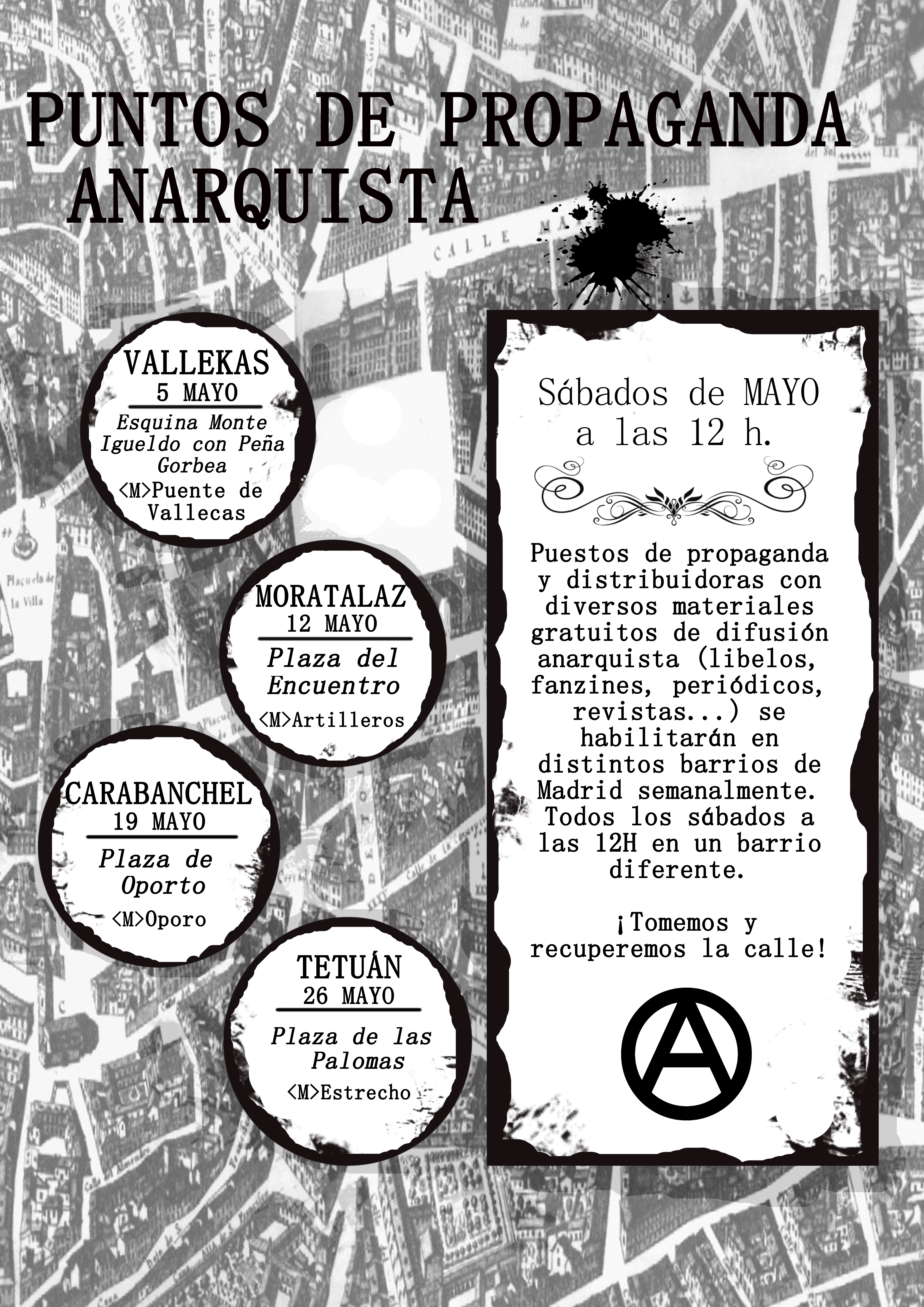 ESPAÑA: PUNTOS DE PROPAGANDA ANARQUISTA – VALLEKAS, MORATALAZ, CARABANCHEL, TETUÁN
