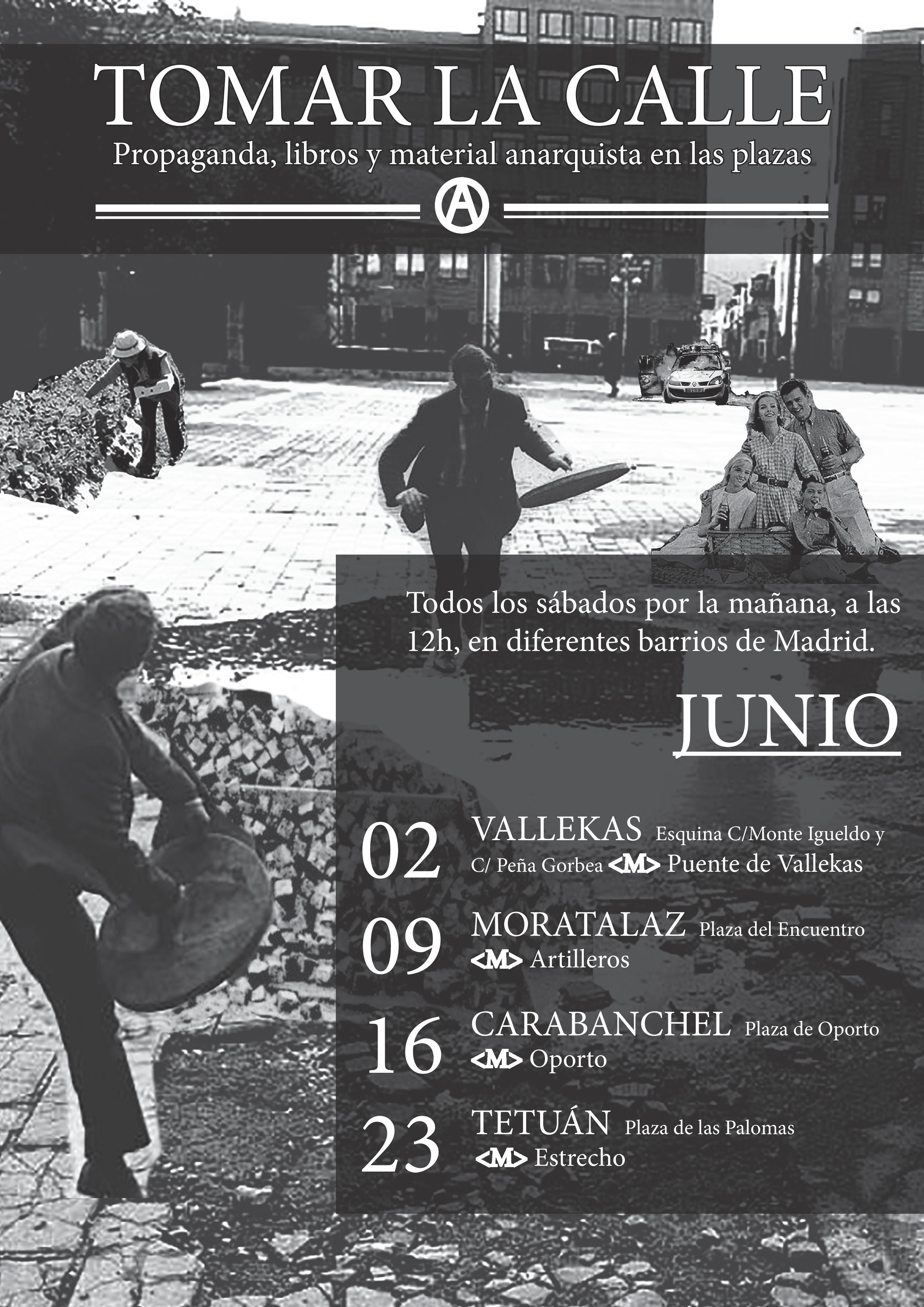 Vuelve la iniciativa “Toma la calle”, varios puntos de difusión de propaganda anarquista en varios barrios de Madrid: vallekas, tetuán, carabanchel y moratalaz.