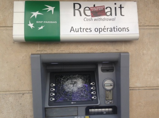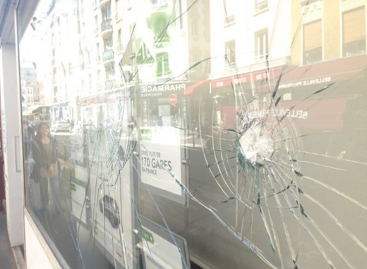 Esta vez, como siempre, algunxs no siguieron en consejo de los respetables casseurs (gamberrxs), y no se limitaron a bancos, agencias de trabajo o McDonals. Algunxs anarquistas alegres decidieron ir a por todas las ventanas de la dominación a lo largo del recorrido.Almidonas Cuando se trata de ir a por el enemigo, no somos exigentes.