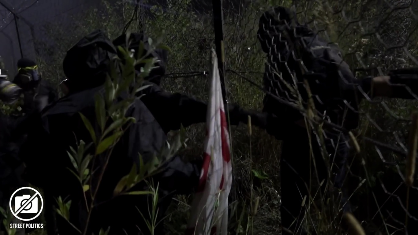 Después de cenar, gracias a la noche sin luna y al espeso follaje del bosque en verano, un grupo de activistas lograron llegar al patio de la construcción y atacaron con pirotecnia, iluminando el cielo de Clarea y ondeando su bandera, la fortaleza violada, mostrando cómo la seguridad del lugar, en la que se gastan miles de euros cada día, es una gran estafa.