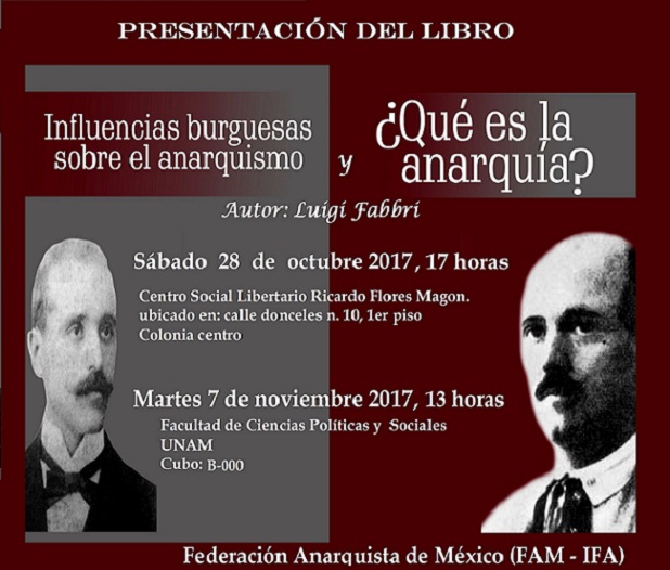 La Federación Anarquista de México invita a la presentación del volumen con las obras bajo autoria de Luigi Fabbri (1877-1935):