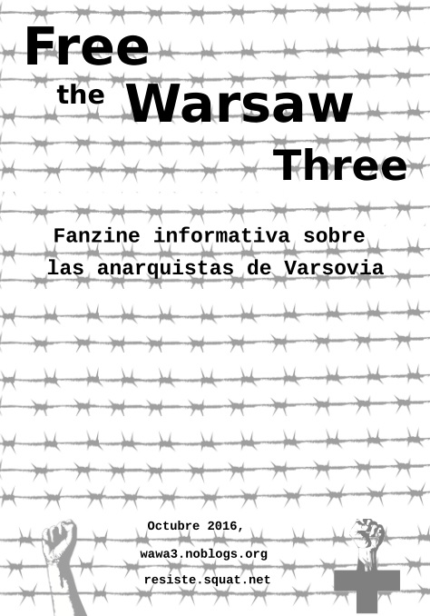 Estarán detenidos en preventiva de 6 meses, en espera de juicio, y se enfrentan a hasta 8 años de prisión. Los compañeros niegan envolucramiento en la acción; uno de ellos ha sido pegado violentamente por la policía. Tres anarquistas fueron detenidos por la policía en Varsovia, Polonia, el 23 de mayo del 2016. Las acusaciones son: tenencia de explosivos con la intención de utilizarlos en un coche policial para su incendio. Se les llama terroristas, por la policía y los medios de comunicación y a pesar que el supuesto incendio no se llevara a cabo, estas acusaciones son muy serias.