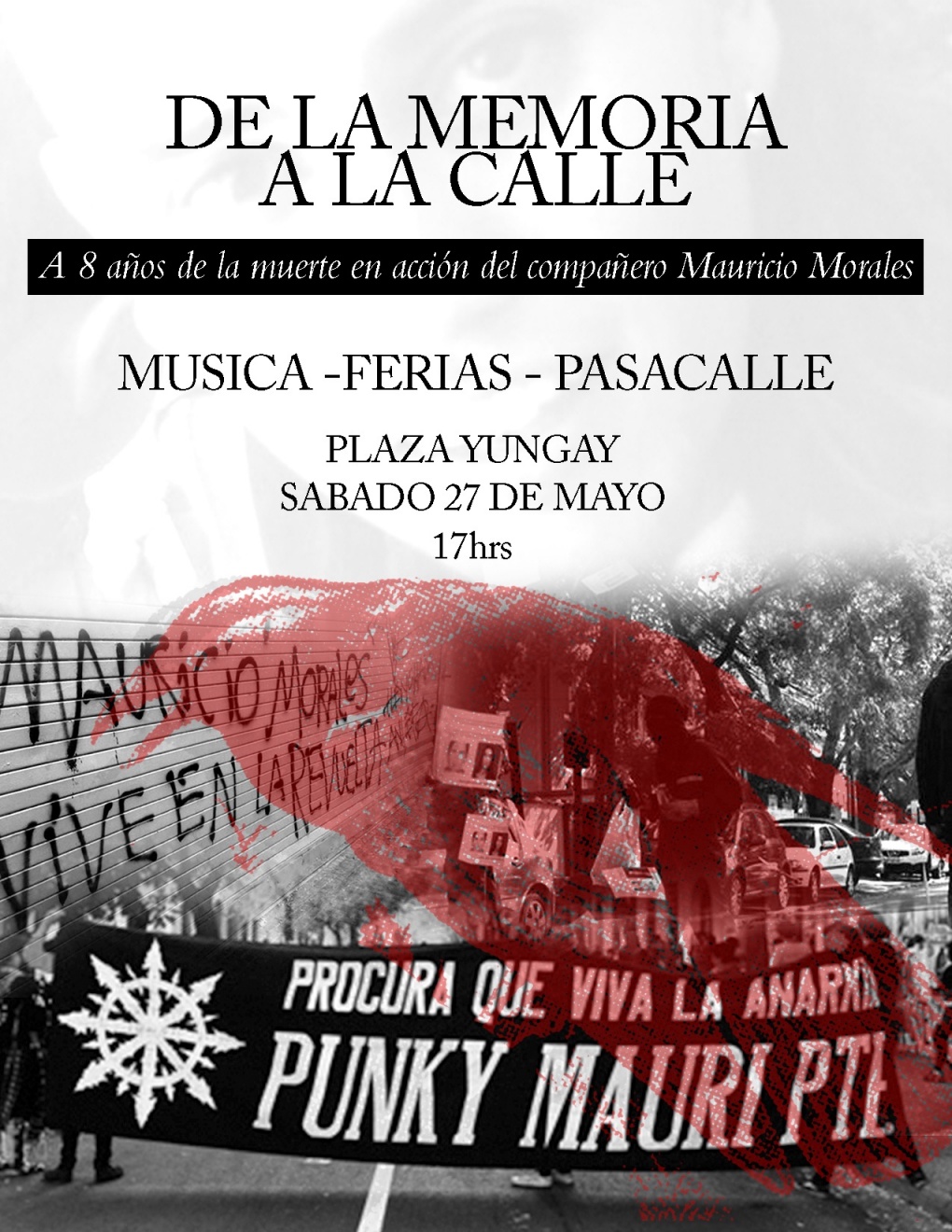 A 8 años de la muerte en acción del compañero Mauricio Morales, nos tomamos la calle para conmemorarlo, expandir las ideas y practicas anárquicas que se oponen con fuerza y convicción a los valores, símbolos y estructuras del sistema de dominación.
