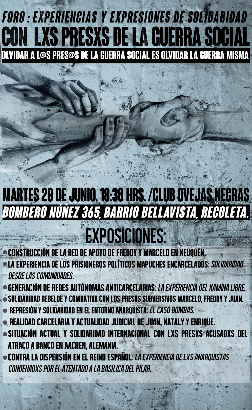 SANTIAGO, CHILE: FORO, EXPERIENCIAS Y EXPRESIONES DE SOLIDARIDAD CON LXS PRESXS DE LA GUERRA SOCIAL