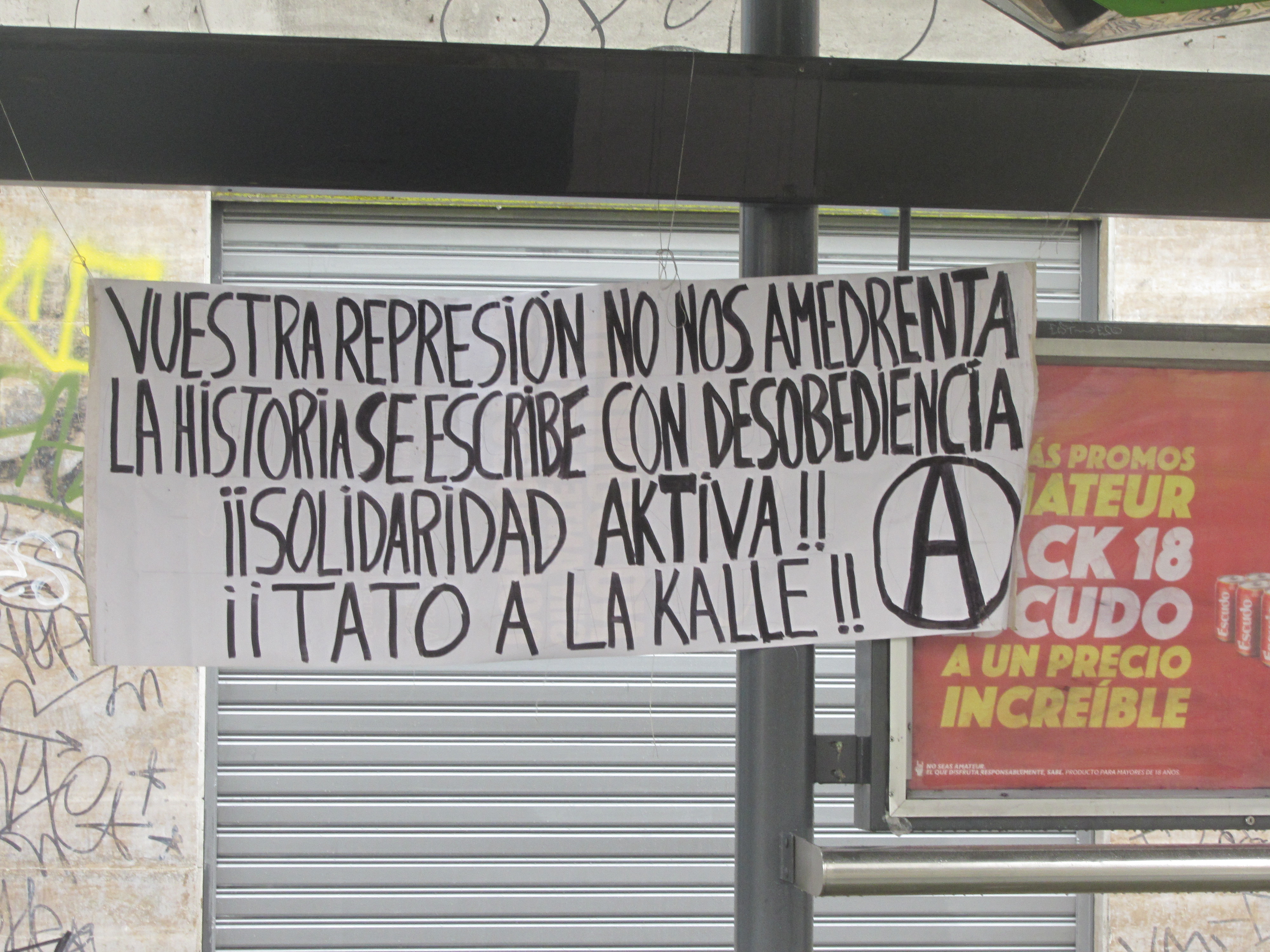 Hoy, cuando Tato fue condenada a tres años y un día, cuando su libertad esta en manos del enemigo, no podemos quedarnos inmóviles ante esta situación. el pasado 26 de mayo en el contexto del enfrentamiento estudiantil contra los pacos, quisimos hacer un gesto mínimo con la intención de visualizar la necesidad de llevar a cabo la solidaridad activa con la compañera y entender que todos los gestos solidarios son transversales hacia la destrucción de esta sociedad carcelaria. Nos sentimos afines y cercanxs a la compañera, desde un posicionamiento antiautoritario, antipatriarcal y por la liberación total. Por ello hacemos una llamado a la extensión de la solidaridad en cualquiera de sus formas. Teniendo en cuenta que la liberación de nuestros presxs es parte de la lucha contra la dominación.