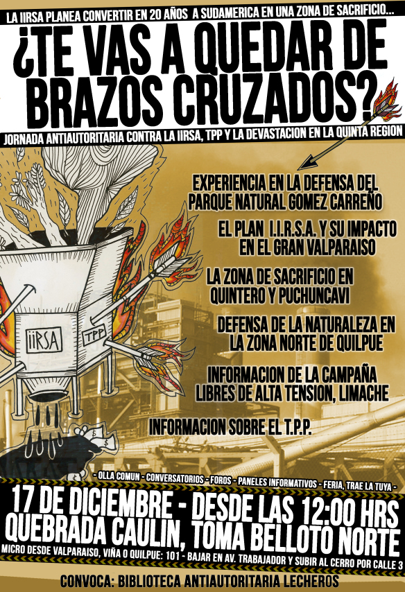 Queremos invitarlos a las Jornadas contra la I.I.R.S.A., T.P.P. y la devastación en la quinta región.