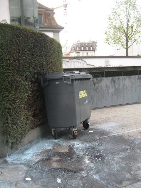 En la noche entre el 23 y el 24 de abril, el consulado de Grecia fue atacada en Zurich (Bellerivestrasse 67). La fachada fue decorada con pintura y un contenedor de residuos se incendió.